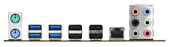 後方 I/O 面板 | 4 組 USB 3.2 Gen1 4 組 USB 2.0 1 組 RJ-45 網路埠 1 組 6 孔音訊輸出入介面 |