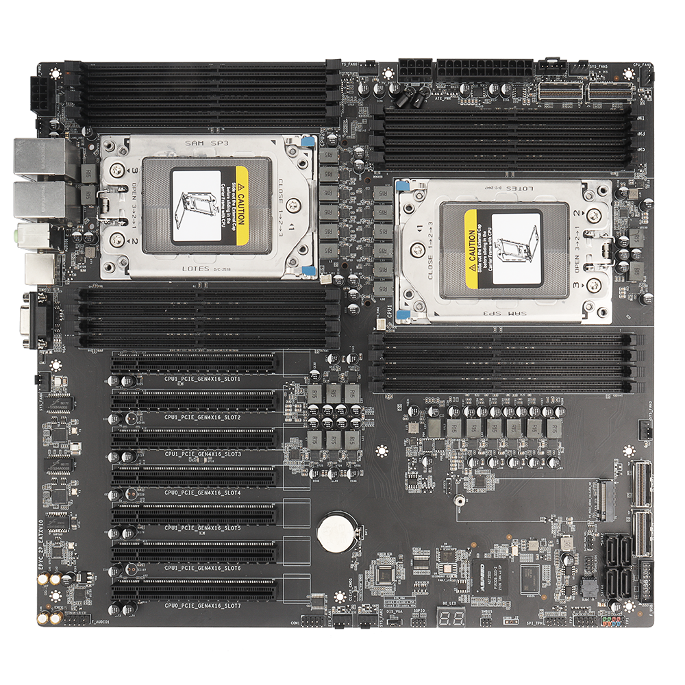 ● Extensive expansion with 7 × PCIe 4.0 x16 slots and 1 × PCIe 4.0 M.2 slot, supporting GPUs, RAID cards, and high-bandwidth accelerators.