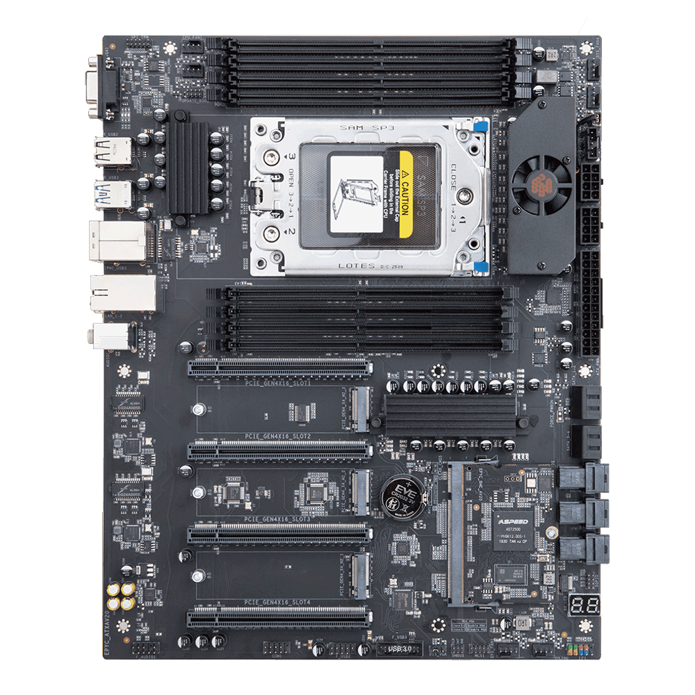 ● 8 DDR4 DIMM slots with up to 2TB Registered ECC memory (2133–3200 MHz) ensure stability and data integrity.
